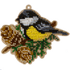 Christmas tree toy kit "Tit on a branch with cones"Set for embroidery with beads on a plywood basis....