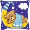DIY Cross stitch cushion kit Bear on the moon blue Our store offers hundreds of beautiful cross stitch...