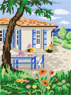DIY Needlepoint kit "Houses at Murnau" is equipped with high-quality materials: - Full color printed needlepoint canvas...