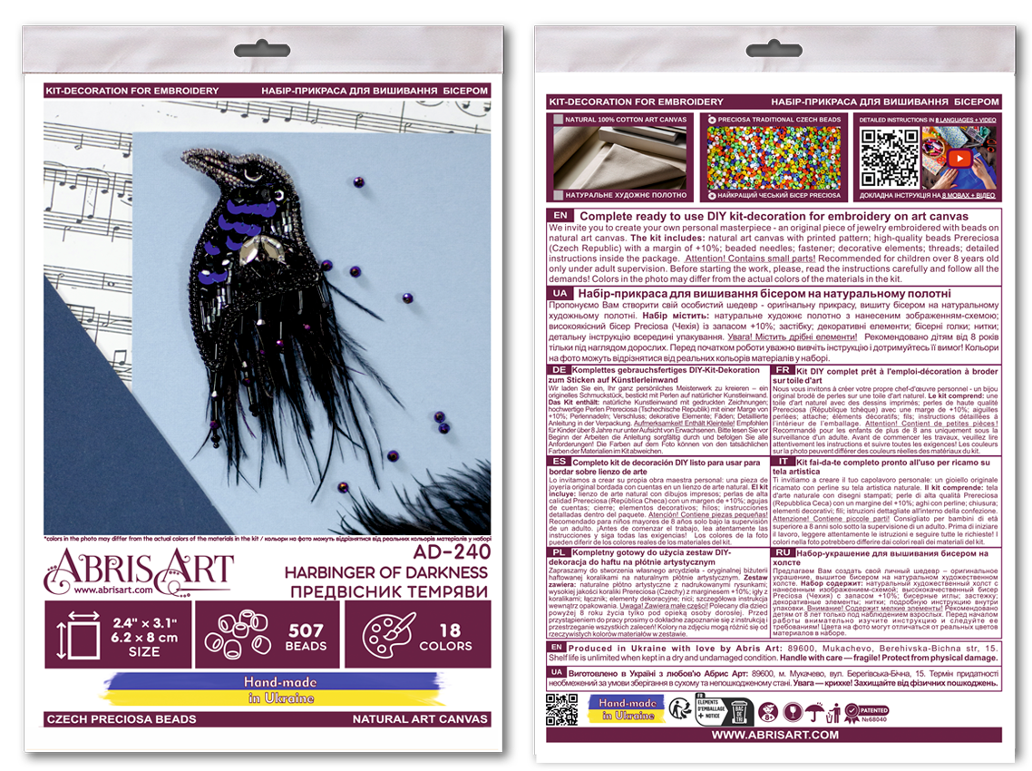 Beadwork kit for creating brooch "Harbinger of Darkness"