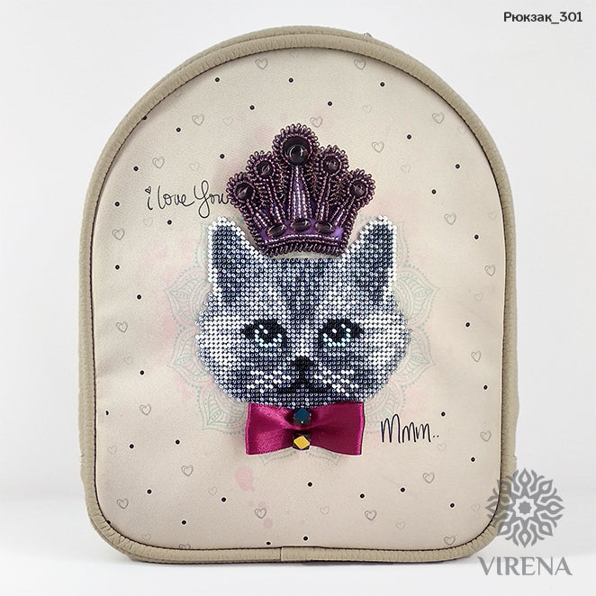 Bead embroidery kit for a backpack "Cat the king", Backpack with embroidery, Bag for embroidery, Gift for girls