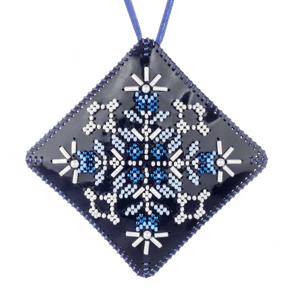 This set includes everything you need to create a sparkling two-sided ornament on durable faux leather. Once embroidered with shimmering Preciosa beads, the two halves are stitched together, filled with soft padding, and finished with a decorative ribbon — ready to hang on your Christmas tree or gift to someone special.