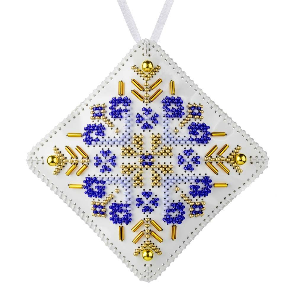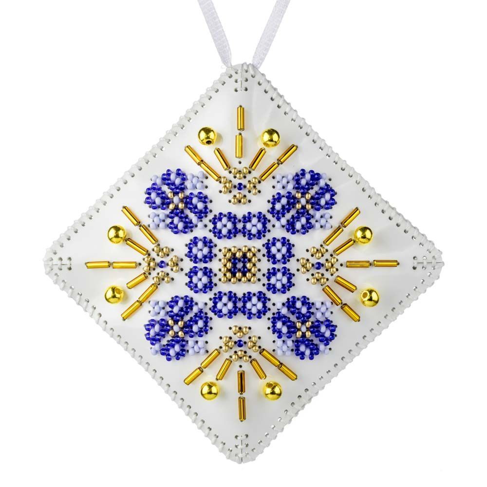 This set includes everything you need to create a sparkling two-sided ornament on durable faux leather. Once embroidered with shimmering Preciosa beads, the two halves are stitched together, filled with soft padding, and finished with a decorative ribbon — ready to hang on your Christmas tree or gift to someone special.