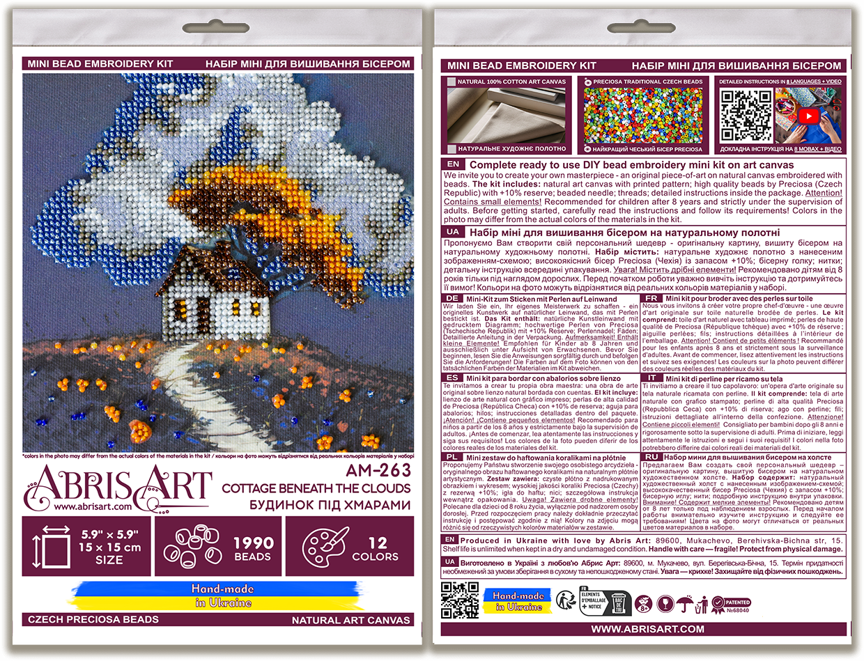 DIY Bead Embroidery Kit "Cottage Beneath the Clouds" - set for embroidery with beads was designed for partial beadwork. Contained natural art canvas has a pattern that is printed with waterproof ink and exactly conveys all the elements of painting and beadwork adds volume and sophistication to the image.