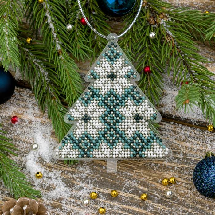 Beautiful DIY kit for embroidery with beads on a plastic canvas. It includes everything you need to create a beautifully embroidered Christmas ornament, including a needlework diagram and instructions. It can be a great gift for your friends. Anyone can do this quickly and easily.