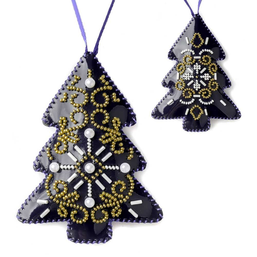 This set includes everything you need to create a sparkling two-sided ornament on durable faux leather. Once embroidered with shimmering Preciosa beads, the two halves are stitched together, filled with soft padding, and finished with a decorative ribbon — ready to hang on your Christmas tree or gift to someone special.