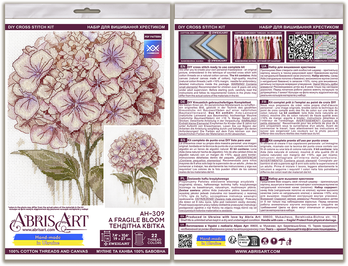 DIY Cross Stitch Kit "A Fragile Bloom" 7.5x10.6 in