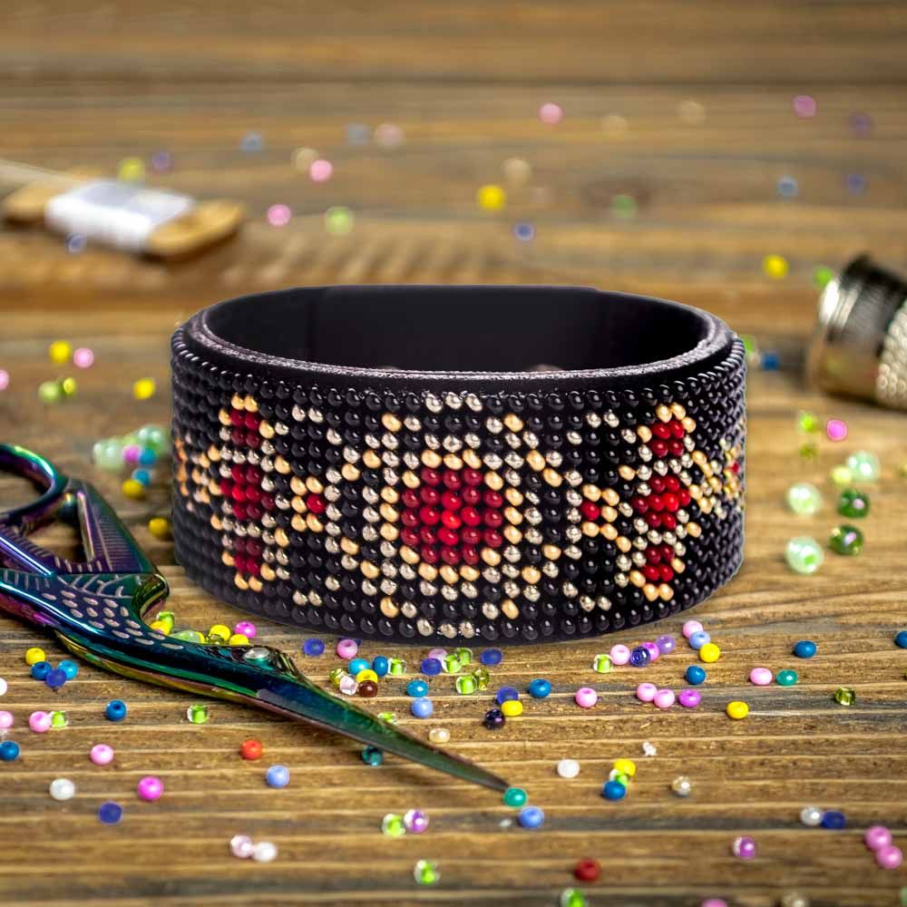 Bead embroidery kit on artificial leather Bracelet (3х22cm) FLBB-122 Black