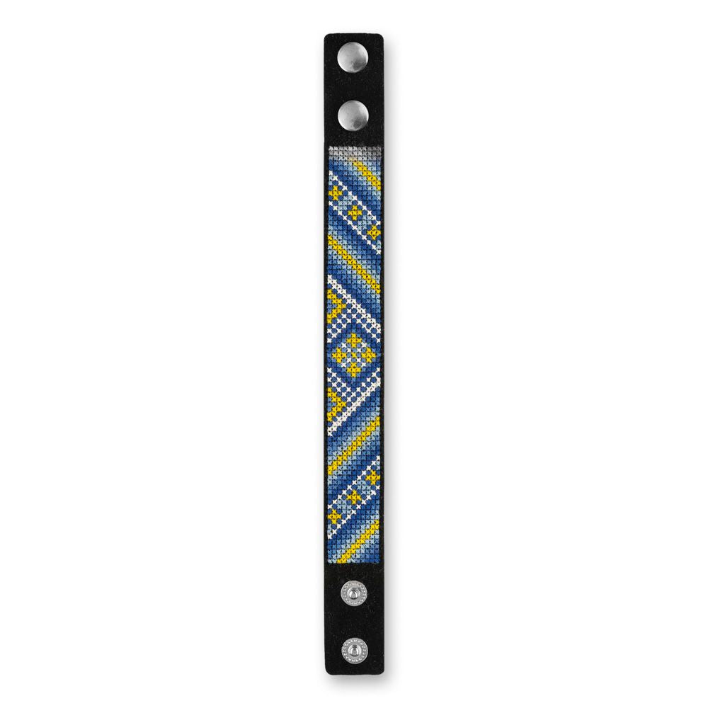 Cross-stitch kit on leather "Ethnic ornament", DIY Bracelet embroidery kit, Bracelet making kit.