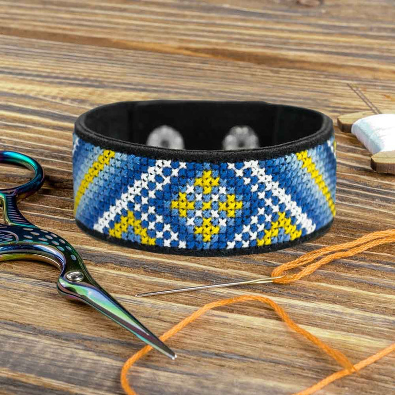 Cross-stitch kits on leather "Ethnic ornament" DIY Bracelet embroidery kit