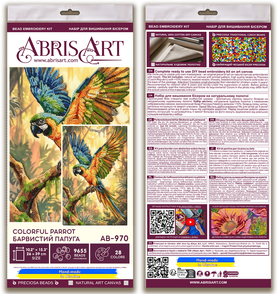 DIY Bead Embroidery Kit "Colorful Parrot" - set for embroidery with beads was designed for partial beadwork. Contained natural art canvas has a pattern that is printed with waterproof ink and exactly conveys all the elements of painting and beadwork adds volume and sophistication to the image.