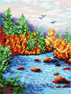 DIY Needlepoint kit "Valley in October" is equipped with high-quality materials: - Full color printed needlepoint canvas...