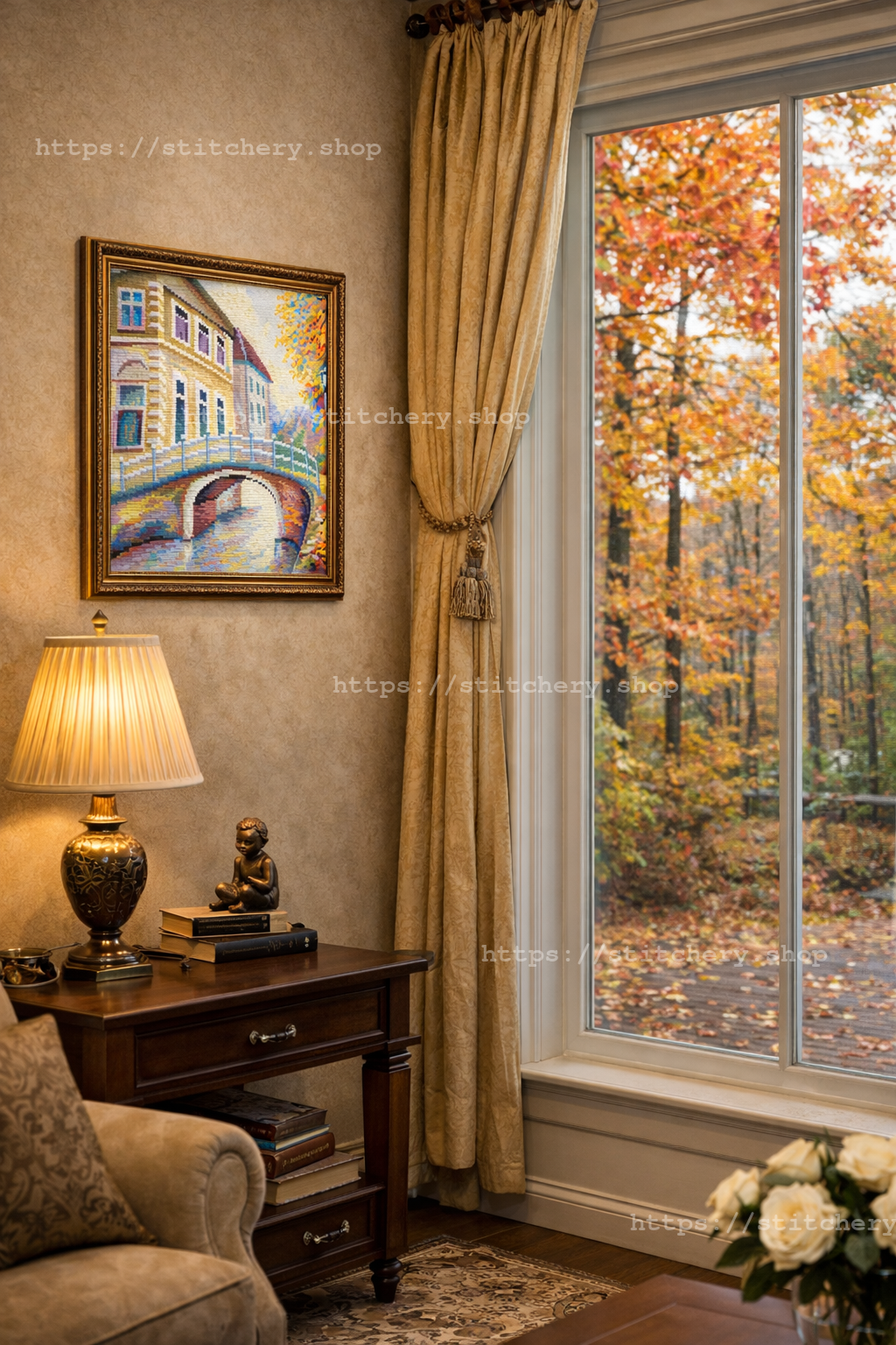 - Full color printed needlepoint/tapestry canvas (100% cotton, 44 holes/10cm, 12 stitches/inch)