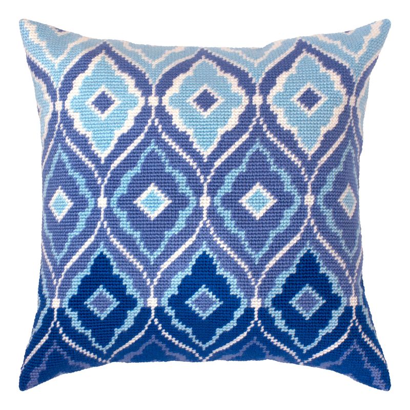 Enhance the aesthetic appeal of your home décor by stitching this mesmerizing Persian-inspired geometric pattern in shades of blue.
