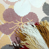 Stitch this nice pattern of Catharanthus flowers with different shades of browns and tints of yellow, white, and...