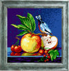DIY Cross Stitch Kit "Red-flanked bluetail and apples" with Printed Tapestry Canvas, Embroidery kit, 9.8x9.8 in / 25x25...