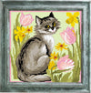 DIY Cross Stitch Kit "Сat among tulips" with Printed Tapestry Canvas, Embroidery kit, 9.8x9.8 in / 25x25 cm...