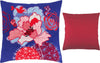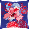 You can stitch this nice reddish flower on blue background to add some new highlights to your home...