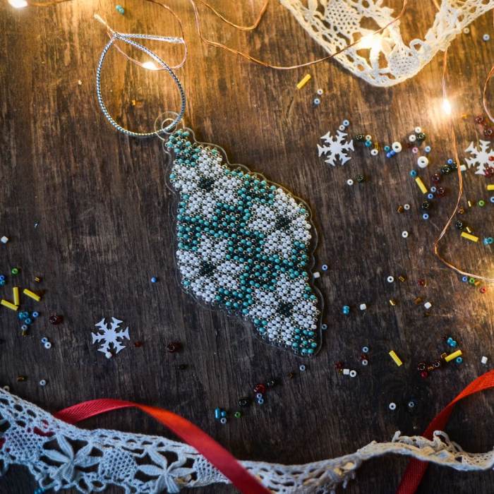 Bead embroidery kit on a plastic base