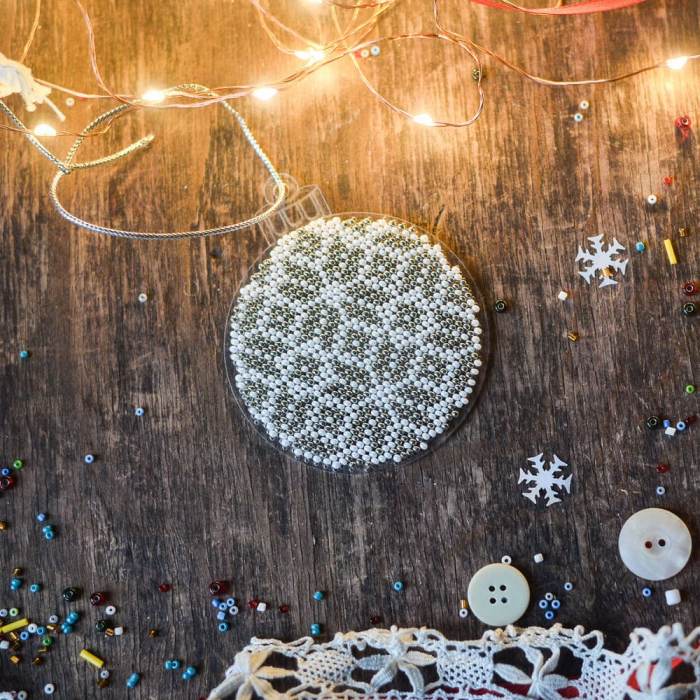 Bead embroidery kit on a plastic base