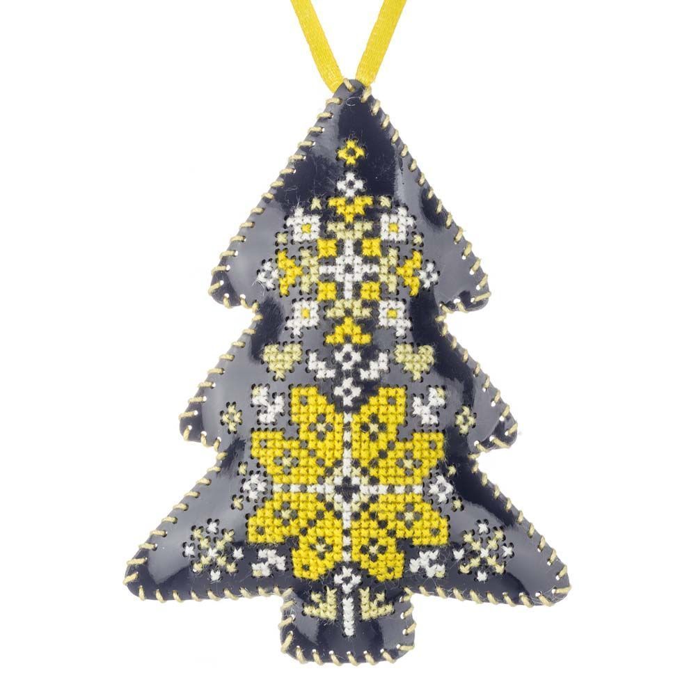 Cross Stitch Kit “Christmas Tree Ornament” DIY Christmas Ornament on Faux Leather