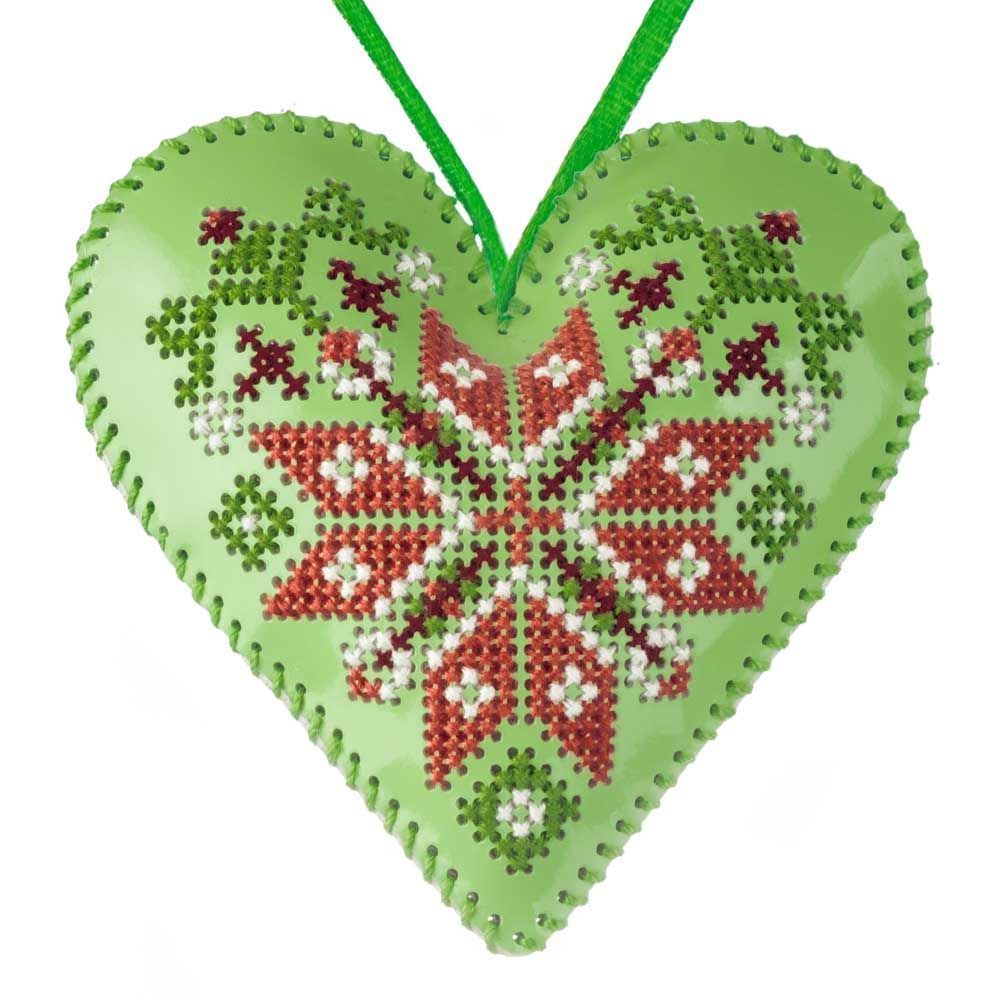 Cross Stitch Kit “Heart Christmas Ornament” DIY Christmas Ornament on Faux Leather