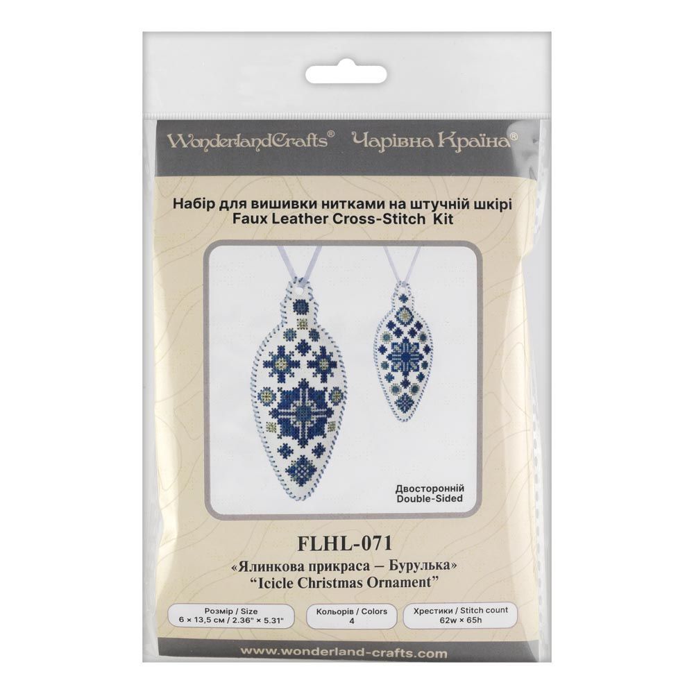 Cross Stitch Kit “Icicle Christmas Ornament” DIY Christmas Ornament on Faux Leather