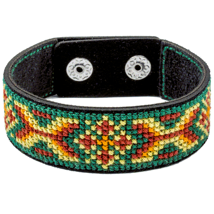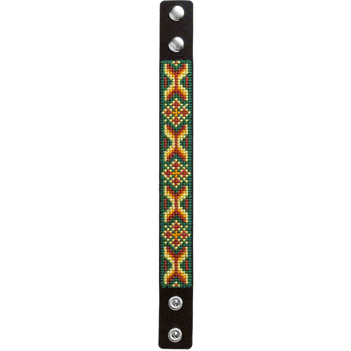 Cross-stitch kits on leather "Ethnic ornament" DIY Bracelet embroidery kit