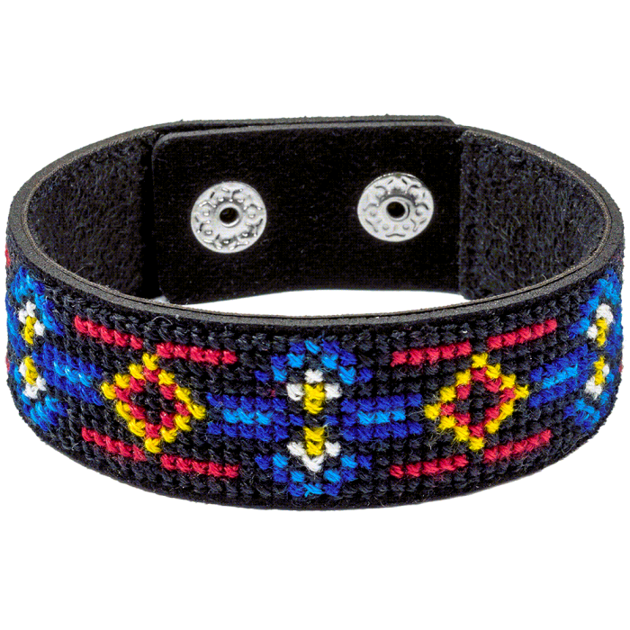 Cross-stitch kits on leather "Ethnic ornament" DIY Bracelet embroidery kit