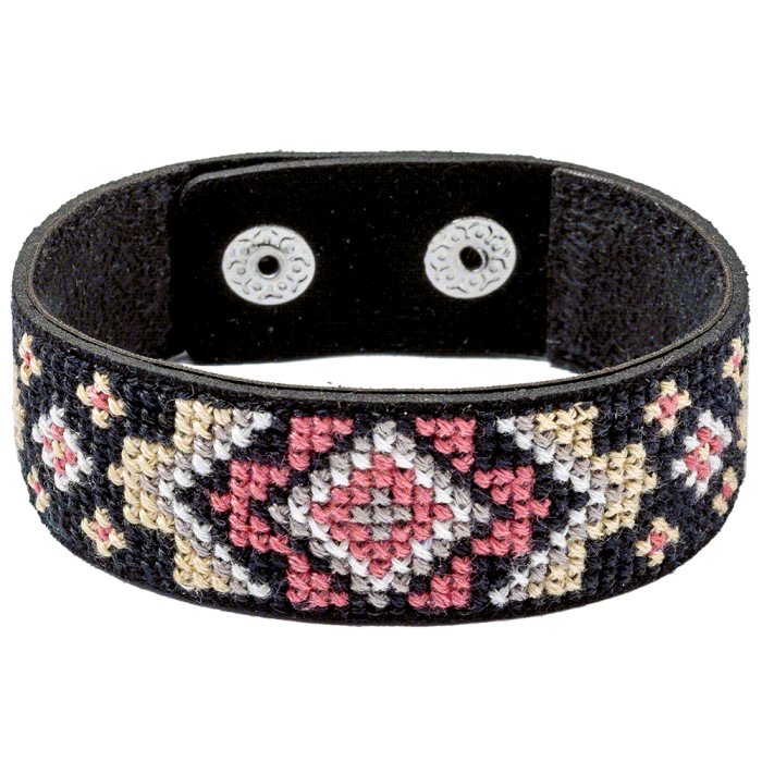Cross-stitch kits on leather "Ethnic ornament" DIY Bracelet embroidery kit