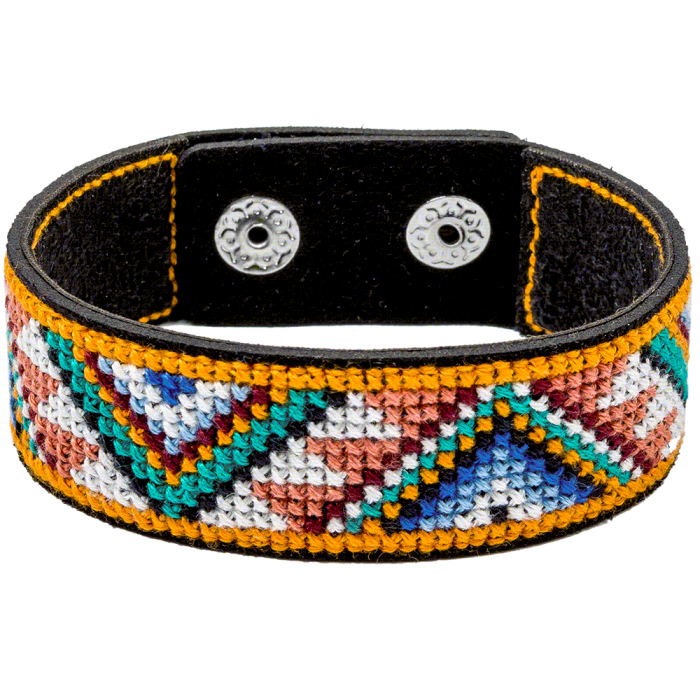 Cross-stitch kits on leather "Ethnic ornament" DIY Bracelet embroidery kit