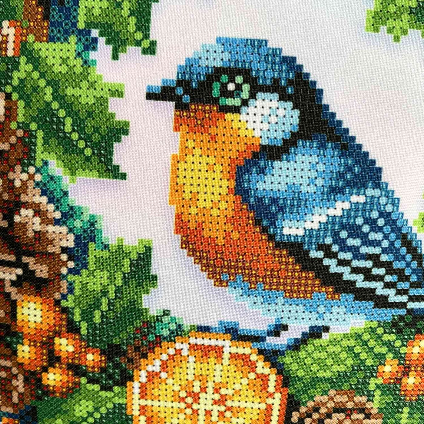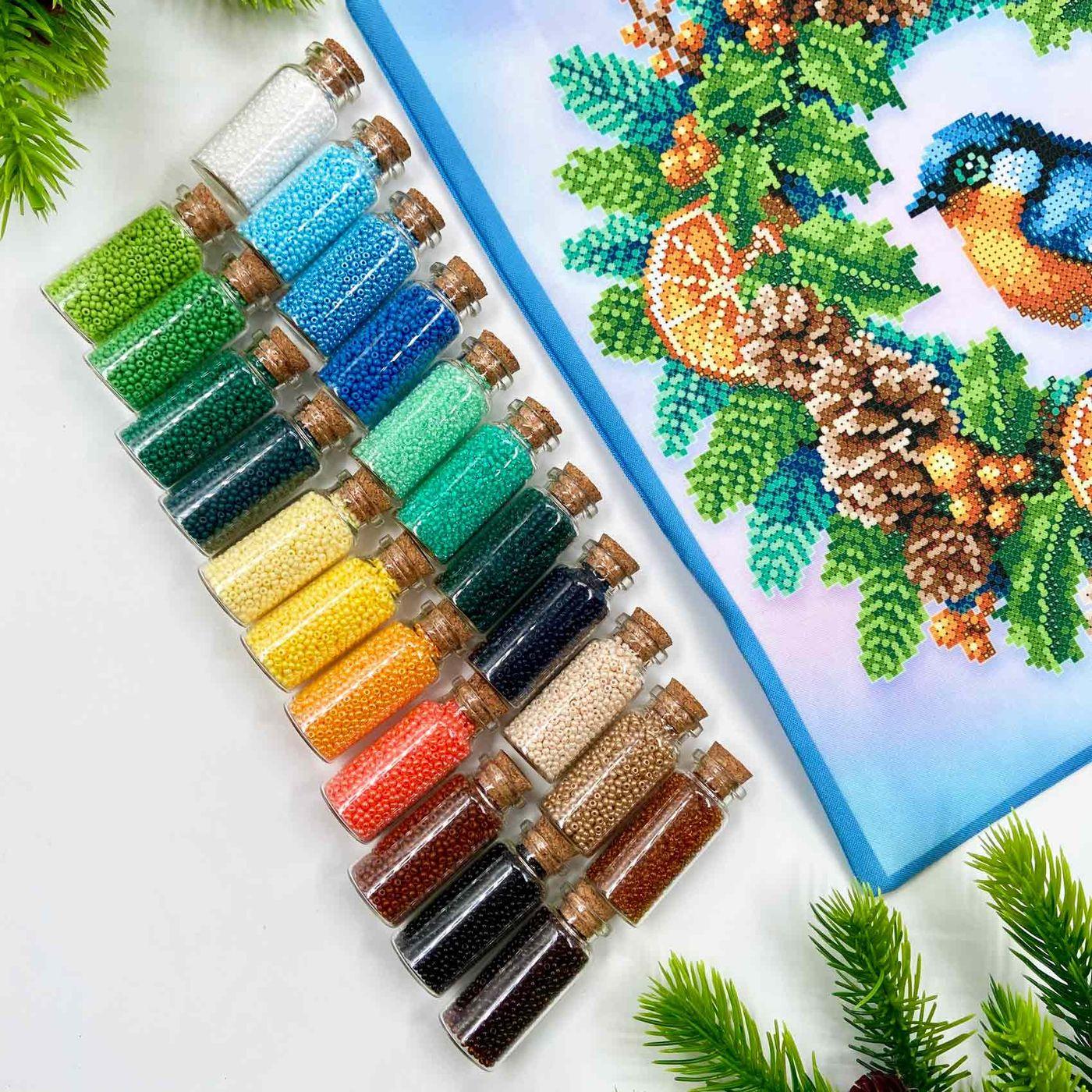 DIY Bead embroidery cushion cover kit "Christmas wreath with a bird"