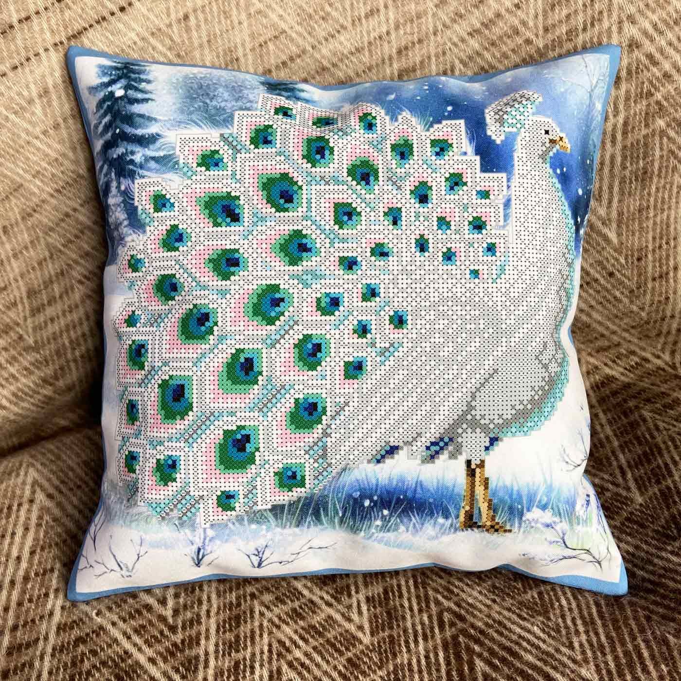 DIY Bead embroidery cushion cover kit "Winter peacock"