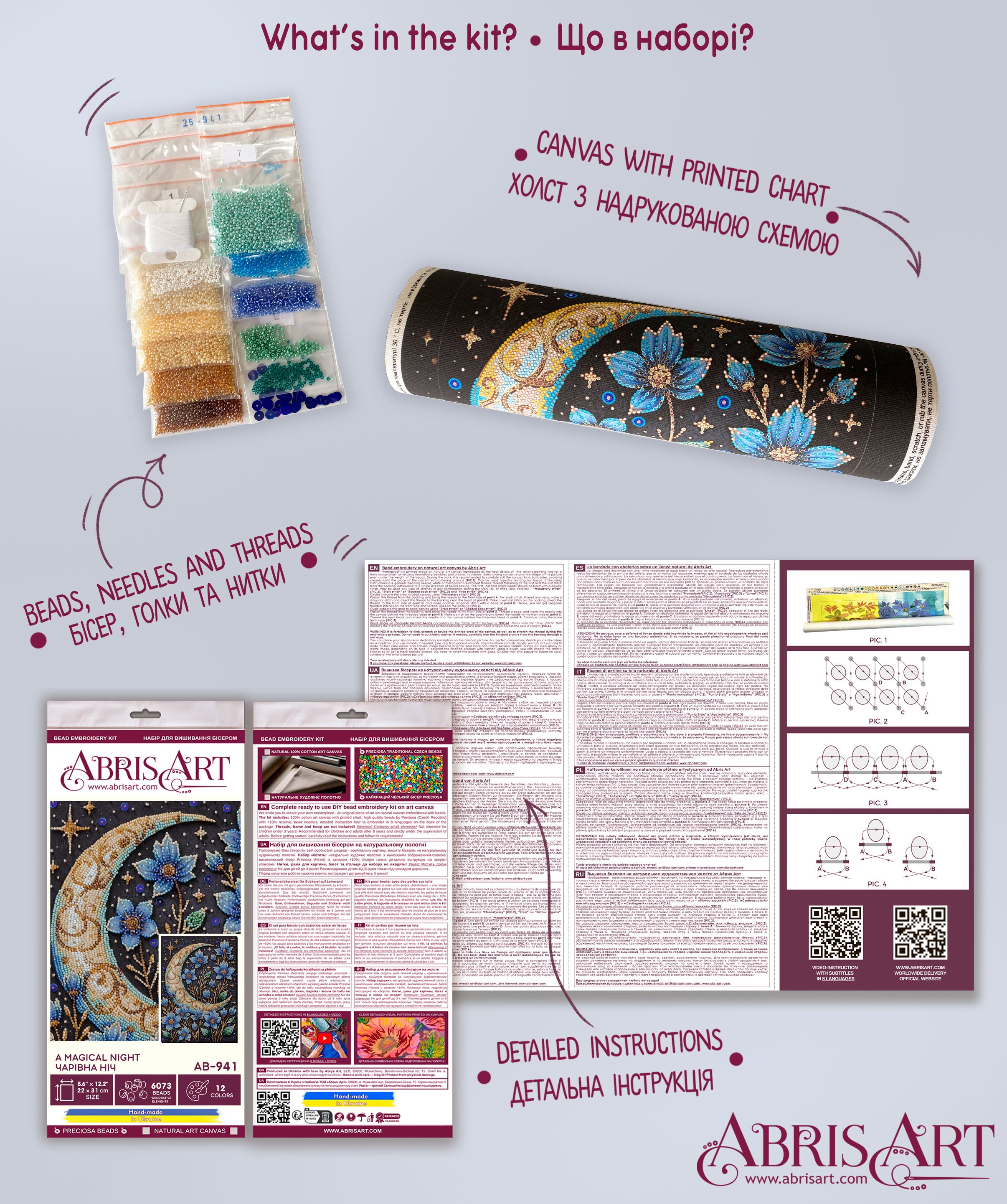 DIY Bead Embroidery Kit "A magical night" - set for embroidery with beads was designed for partial beadwork. Contained natural art canvas has a pattern that is printed with waterproof ink and exactly conveys all the elements of painting and beadwork adds volume and sophistication to the image.