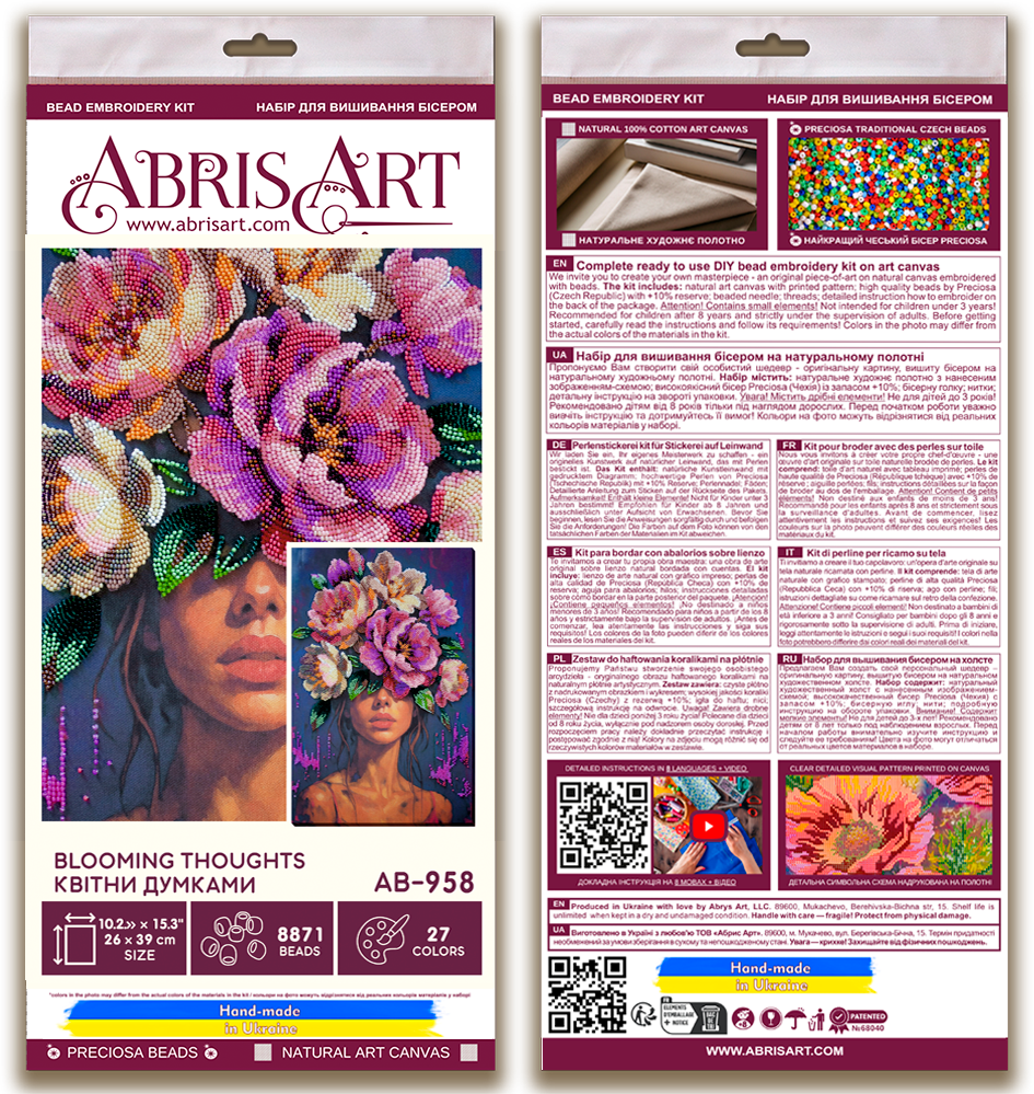 DIY Bead Embroidery Kit "Blooming Thoughts" 10.2"x15.4" / 26.0x39.0 cm