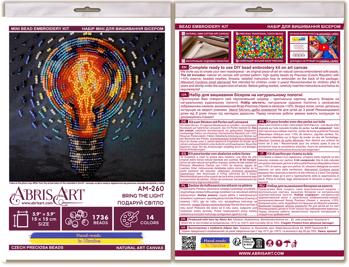 DIY Bead Embroidery Kit "Bring the light" 5.9"x5.9" / 15.0x15.0 cm