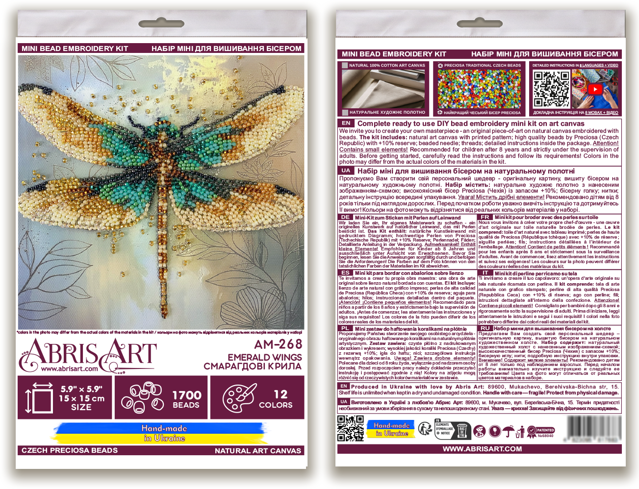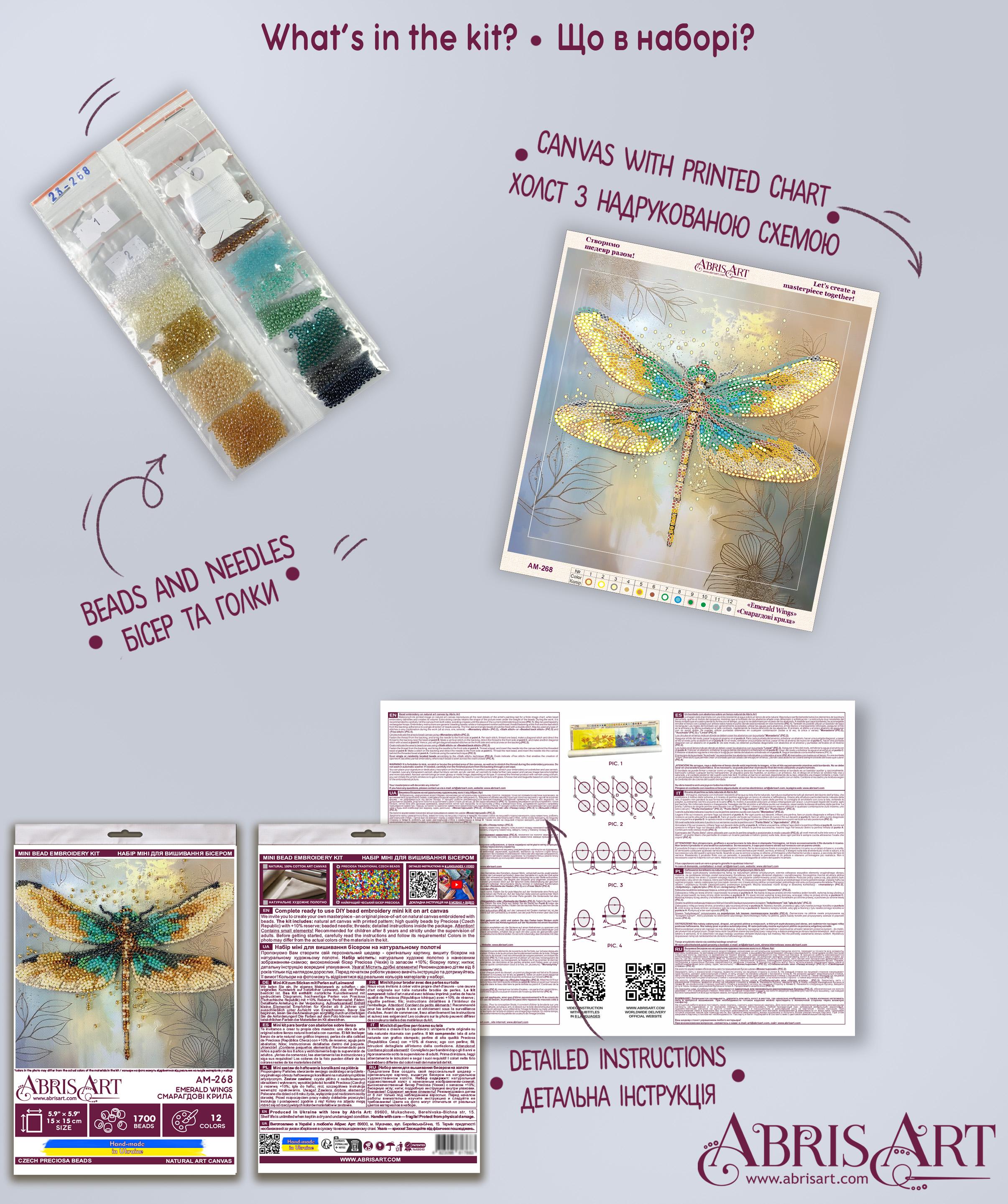 DIY Bead Embroidery Kit "Emerald wings" 5.9"x5.9" / 15.0x15.0 cm