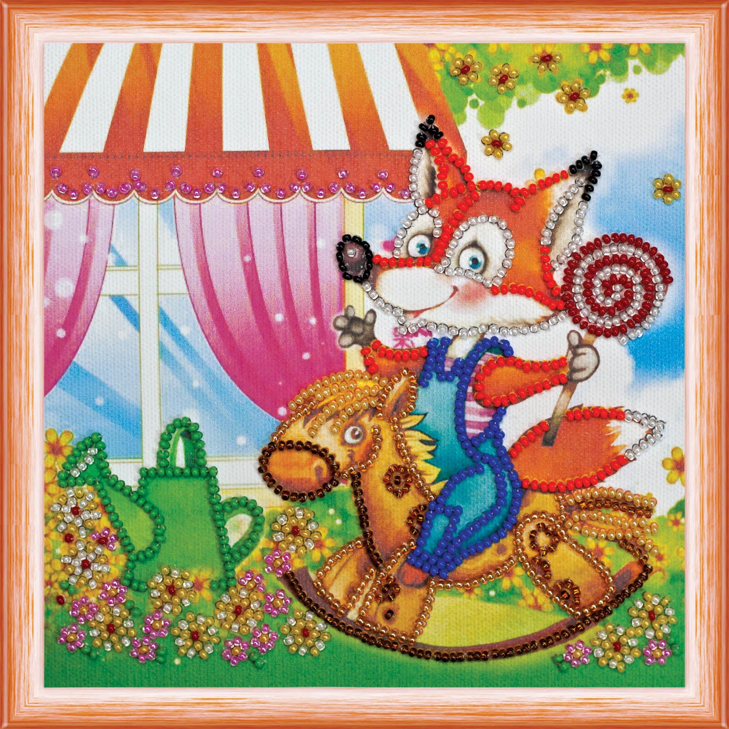 DIY Bead Embroidery Kit "On a rocking horse" 5.9"x5.9" / 15.0x15.0 cm