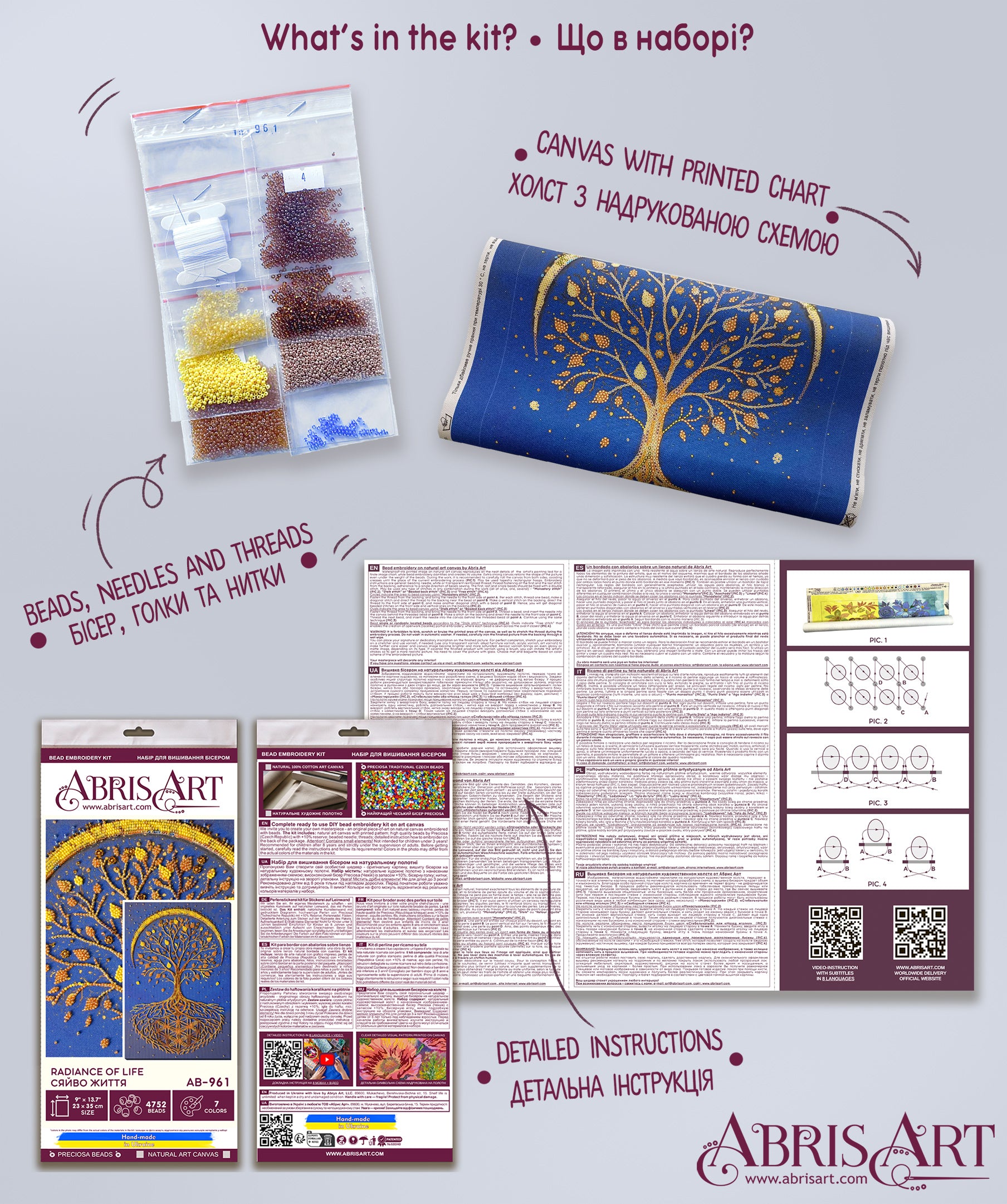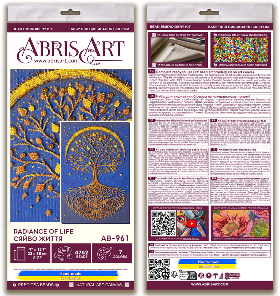 DIY Bead Embroidery Kit "Radiance of Life" 9.1"x13.8" / 23.0x35.0 cm