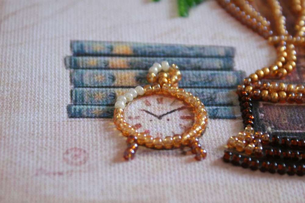 DIY Bead Embroidery Kit "Still lafe with a clock"  5.9"x5.9" / 15.0x15.0 cm