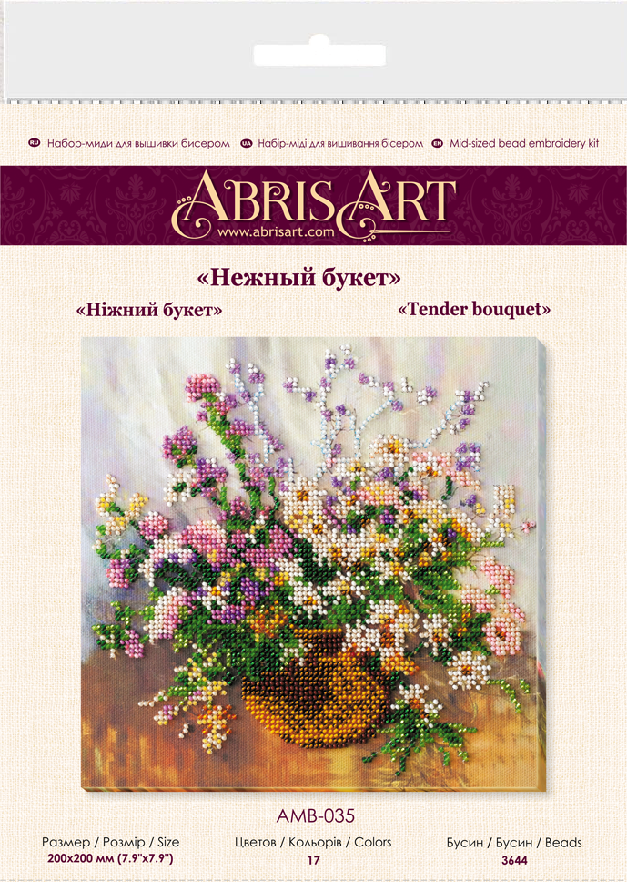 DIY Bead Embroidery Kit "Tender bouquet" - set for embroidery with beads was designed for partial beadwork. Contained natural art canvas has a pattern that is printed with waterproof ink and exactly conveys all the elements of painting and beadwork adds volume and sophistication to the image.