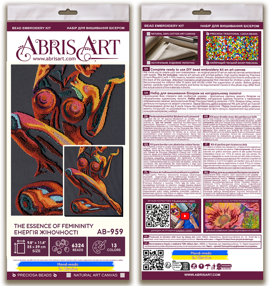 DIY Bead Embroidery Kit "The essence of femininity" 9.8"x11.4" / 25.0x29.0 cm