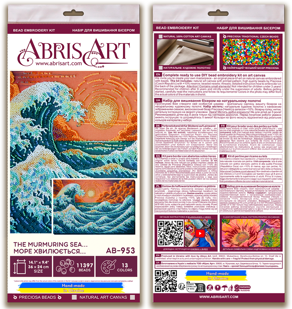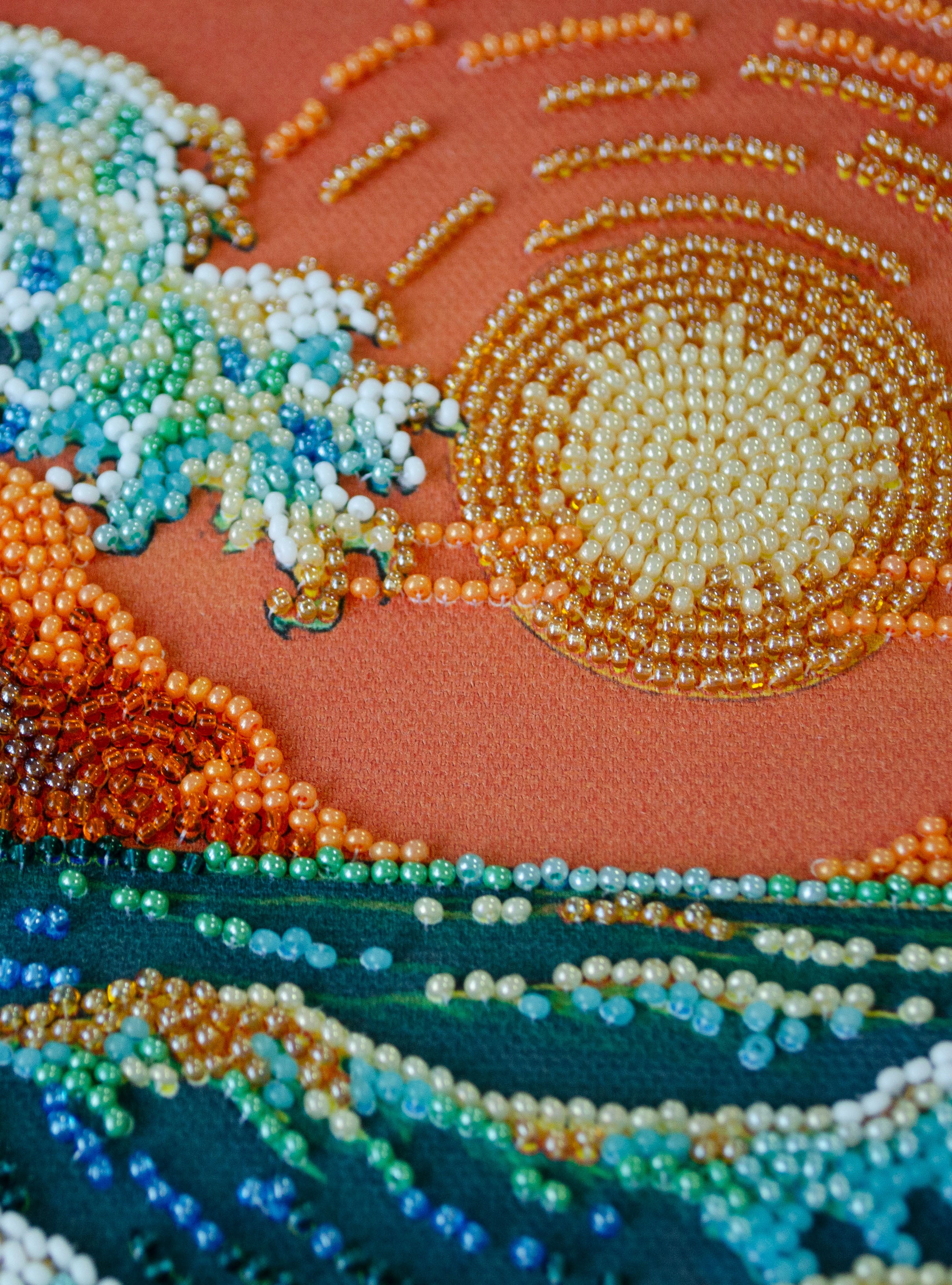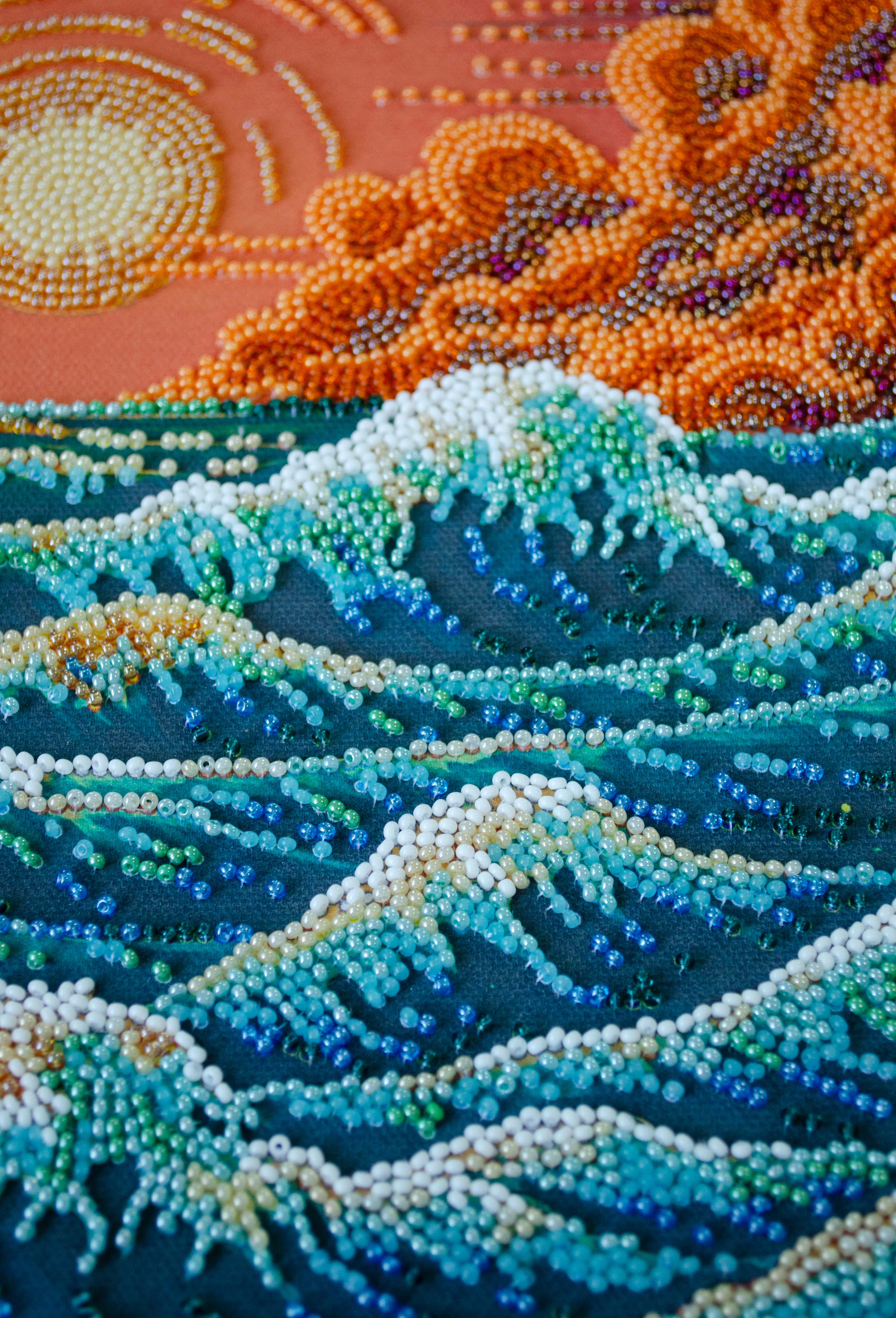 DIY Bead Embroidery Kit "The Murmuring Seа" - set for embroidery with beads was designed for partial beadwork. Contained natural art canvas has a pattern that is printed with waterproof ink and exactly conveys all the elements of painting and beadwork adds volume and sophistication to the image.