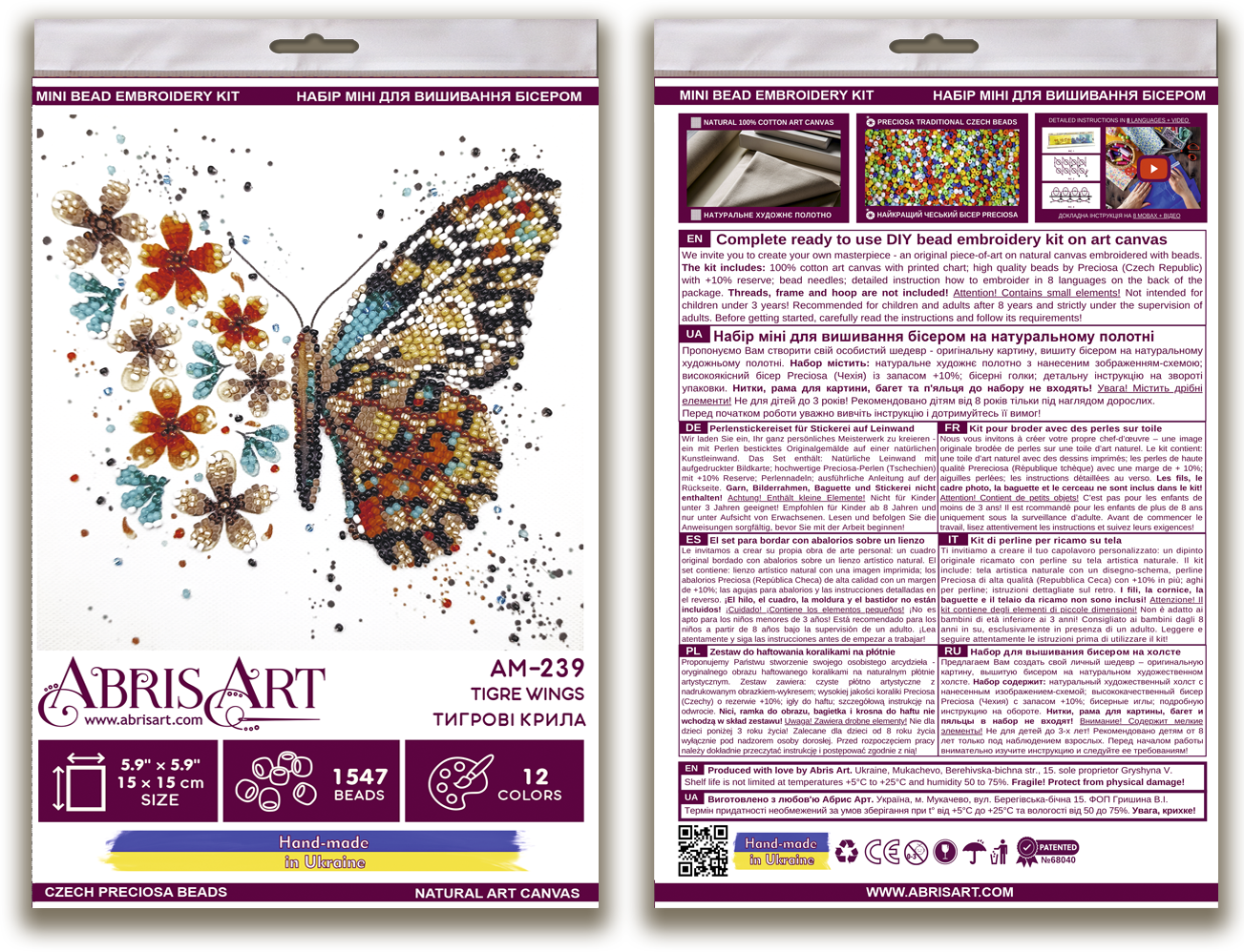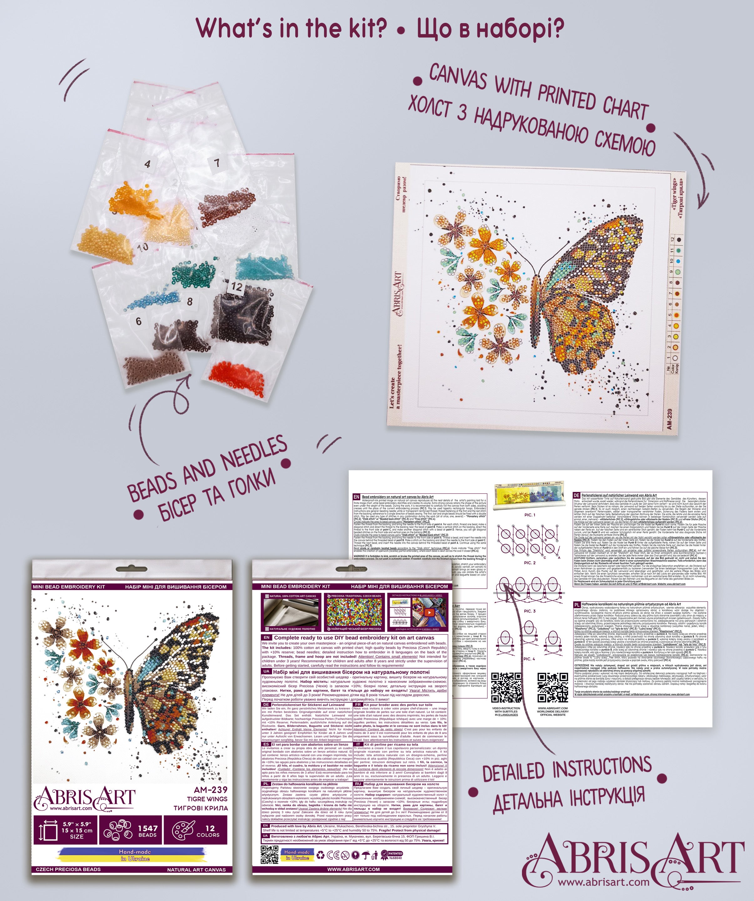 DIY Bead Embroidery Kit "Tigre wings" - set for embroidery with beads was designed for partial beadwork. Contained natural art canvas has a pattern that is printed with waterproof ink and exactly conveys all the elements of painting and beadwork adds volume and sophistication to the image.