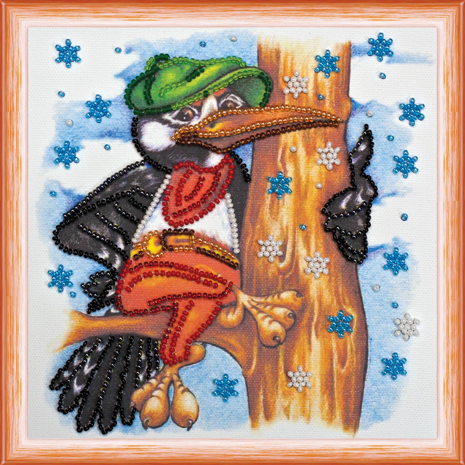 DIY Bead Embroidery Kit "Woodpecker" 5.9"x5.9" / 15.0x15.0 cm