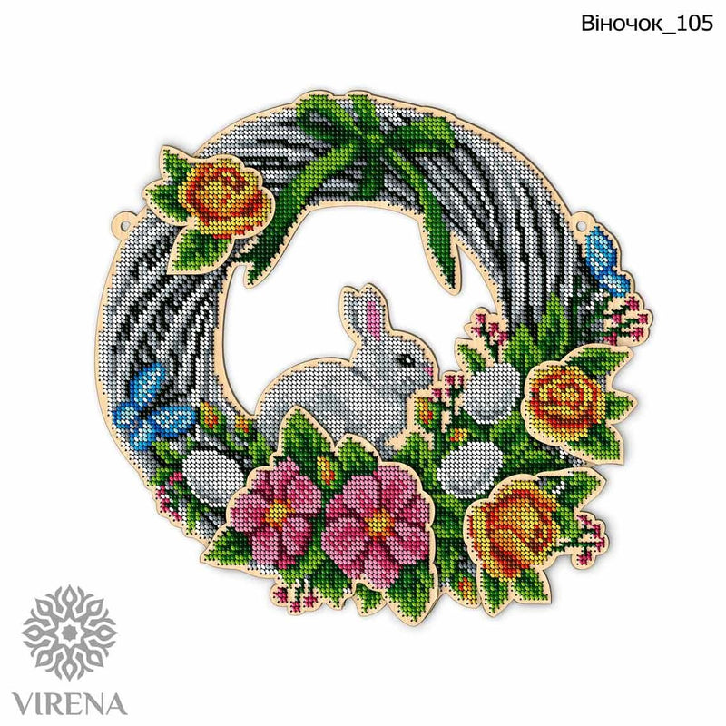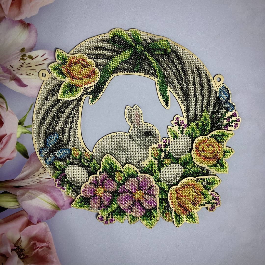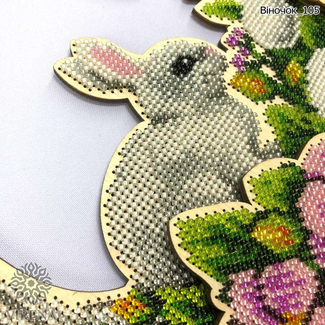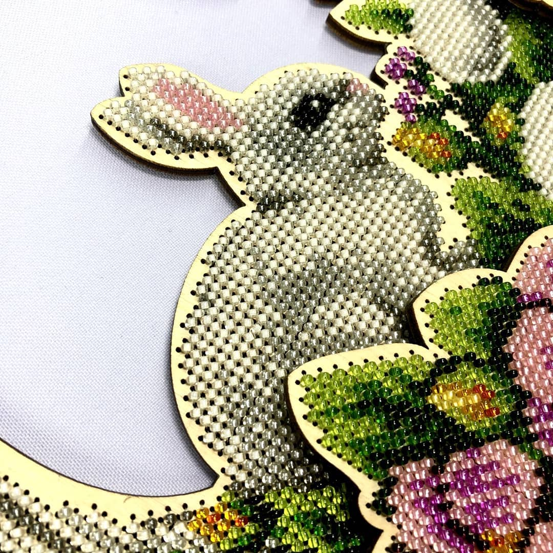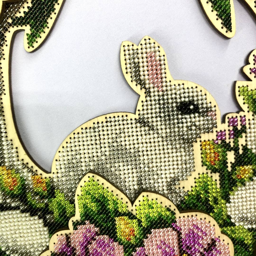 DIY Beaded Door Wreath Kit "Easter bunny" Embroidery on wood, Home decoration