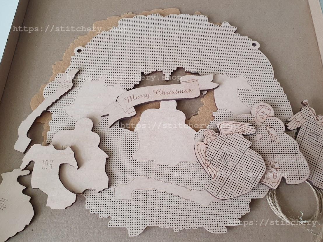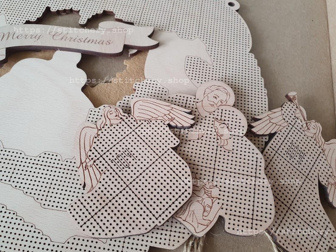 DIY Beaded Door Wreath Kit "Merry Christmas" Embroidery on wood, Home decoration