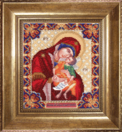 The kit contains: color pattern, instruction chart, printed embroidery cloth, Preciosa beads – 22 colors and beaded needles.