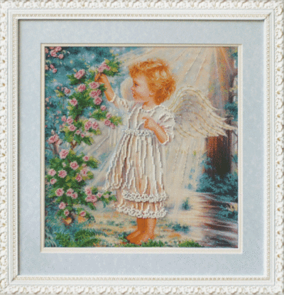 DIY Beadwork kit "Angel and pink bush", Bead Embroidery Kit, Home decor