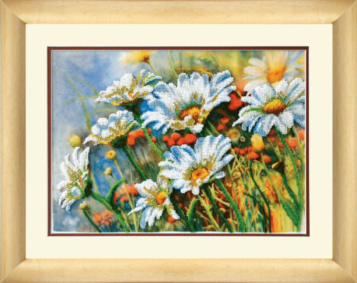 DIY Beadwork kit "Camomiles", Bead Embroidery Kit, Home decor